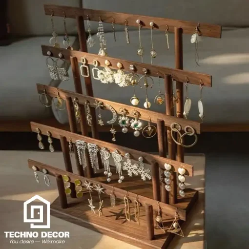 - Kệ treo bông tai bằng gỗ không chỉ là vật dụng lưu trữ trang sức mà còn là một món đồ trang trí tinh tế.