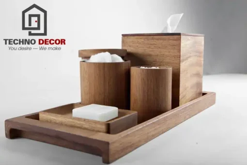 - Khay gỗ có ngăn chia: Giúp sắp xếp mỹ phẩm và trang sức theo từng khu vực riêng biệt.
